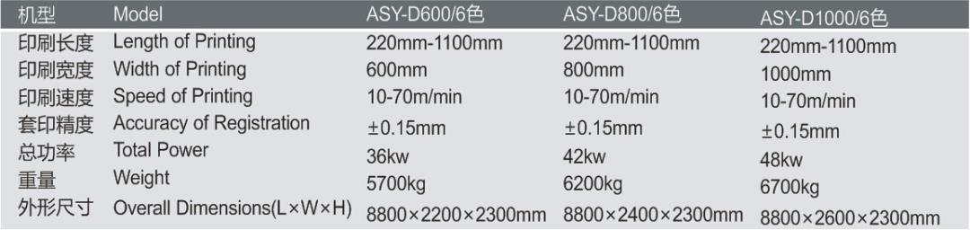 This machine is applicable for continuous multi-color printing on reel-shape materials in good printing performance such as BOPP, PET, PVC, PE, aluminum foil, paper, slight leather